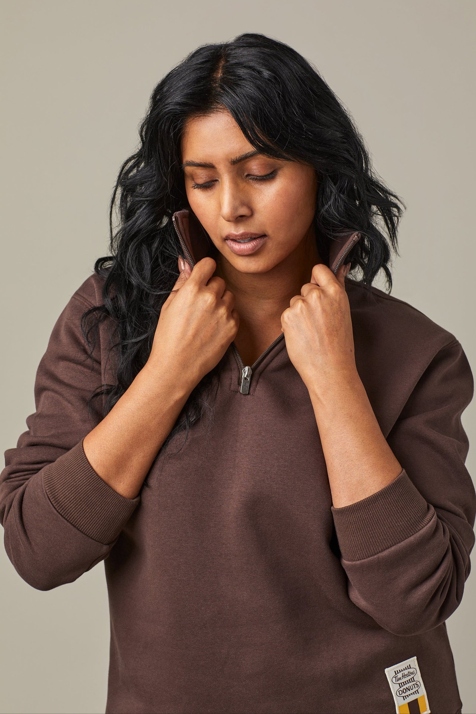 Retro Logo Unisex Quarter Zip Sweatshirt – Espresso
