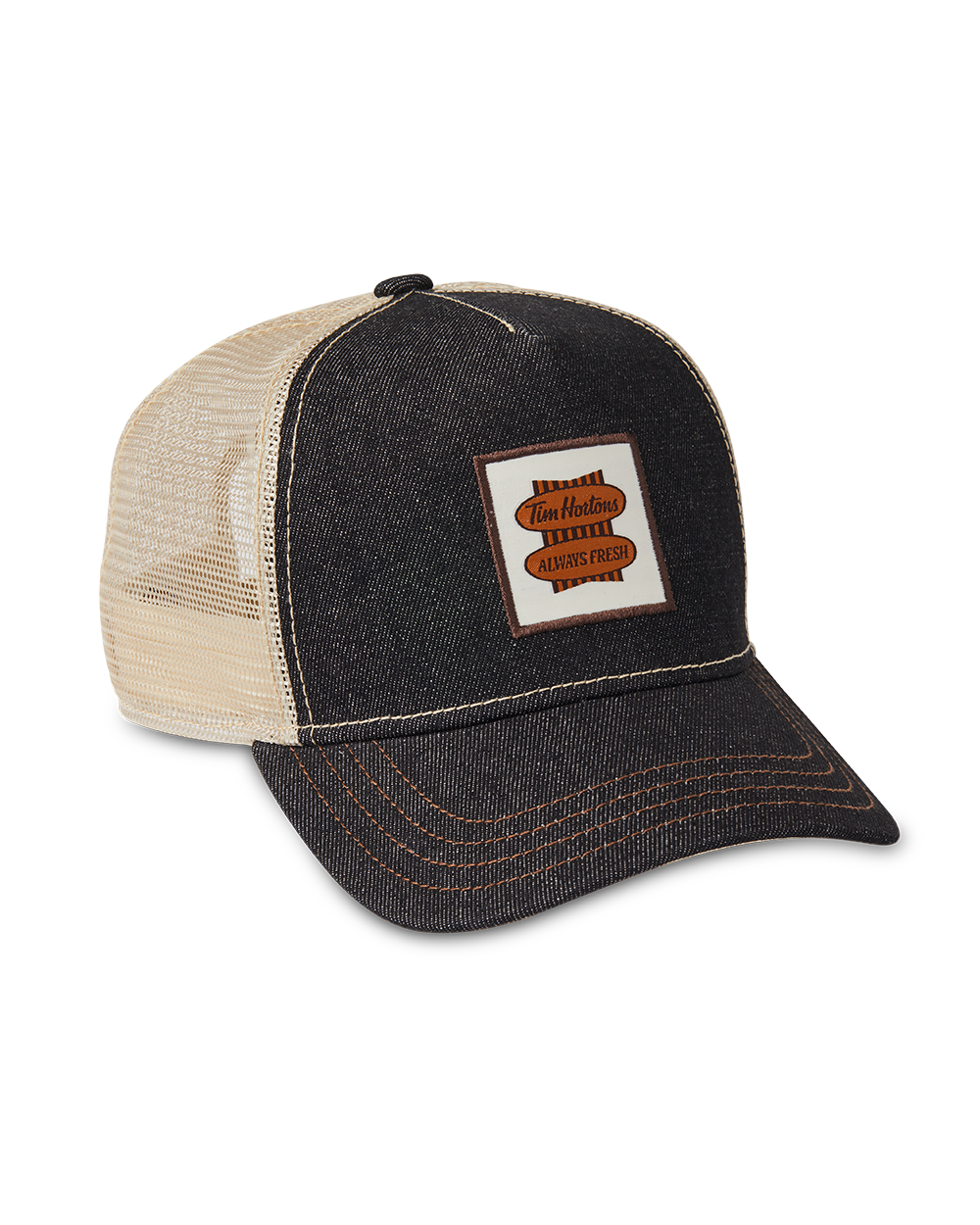 This two-tone trucker hat is your off-duty essential with breathable mesh back and vintage-style patch.